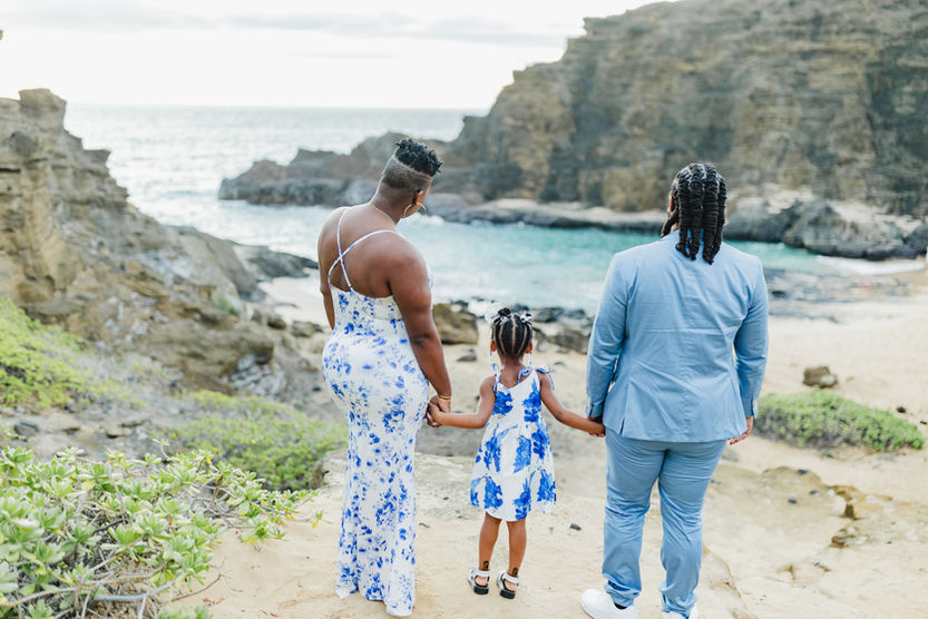 Eternity Beach is a hidden gem for family photos—tucked between lava cliffs and kissed by golden light. The dramatic scenery makes for EPIC photos, but the cove itself feels quiet and intimate, making it surprisingly family-friendly. We keep the session playful (never stiff or formal!) so your crew can laugh, explore, and cuddle their way through a truly magical experience.